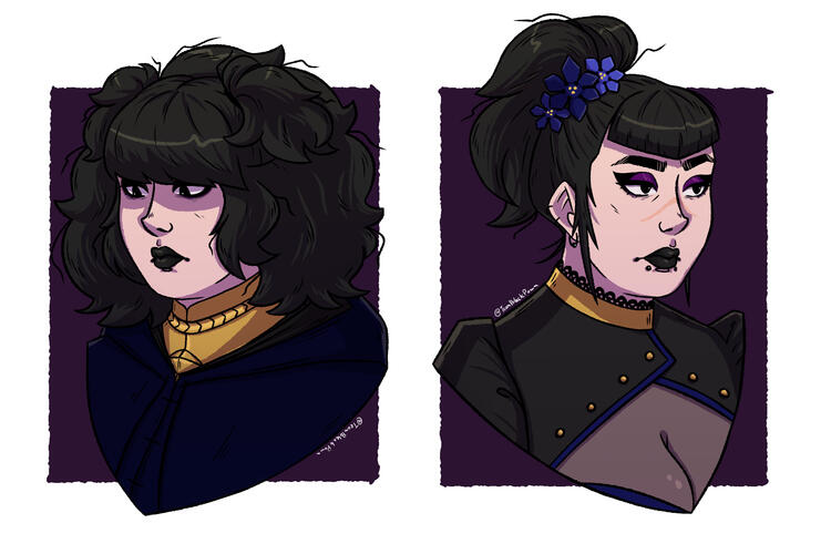 Raven is Asra's apprentice and the residant magical jewelry maker. A quiet and tiny woman, she tends to blend out with the crowd, despite looking a little more unusual than the overall Vesuvian populace. But do not mistake her secretive character for being well-behaved: she Can and Will get herself into legal troubles for "the funsies". That sense of adventure is what initially brought Julian to her. Other than that, she really likes bugs, mostly butterflies.Individual Tag: #butterfly wings [raven]